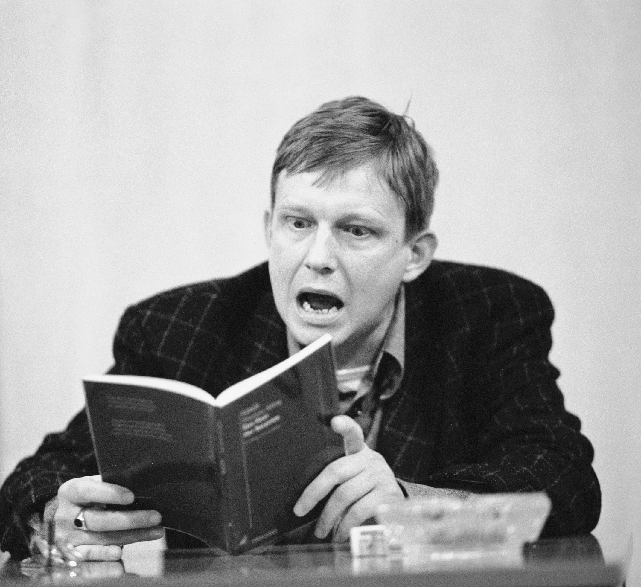 ... präzise und deutlich, mit durchdachten Tempo- und Lautstärkevarianzen, vom Flüstern bis zum Brüllen, jede Sekunde durchchoreografiert, aber durchaus mit Raum für die spontane Eingebung – wie ein professioneller Schauspieler, nur genauer, besser, klüger. So wurde er nach seinen ersten, viele noch irritierenden Auftritten Mitte der achtziger Jahre vom Geheimtipp zur Legende unter Deutschlands Dichtern.